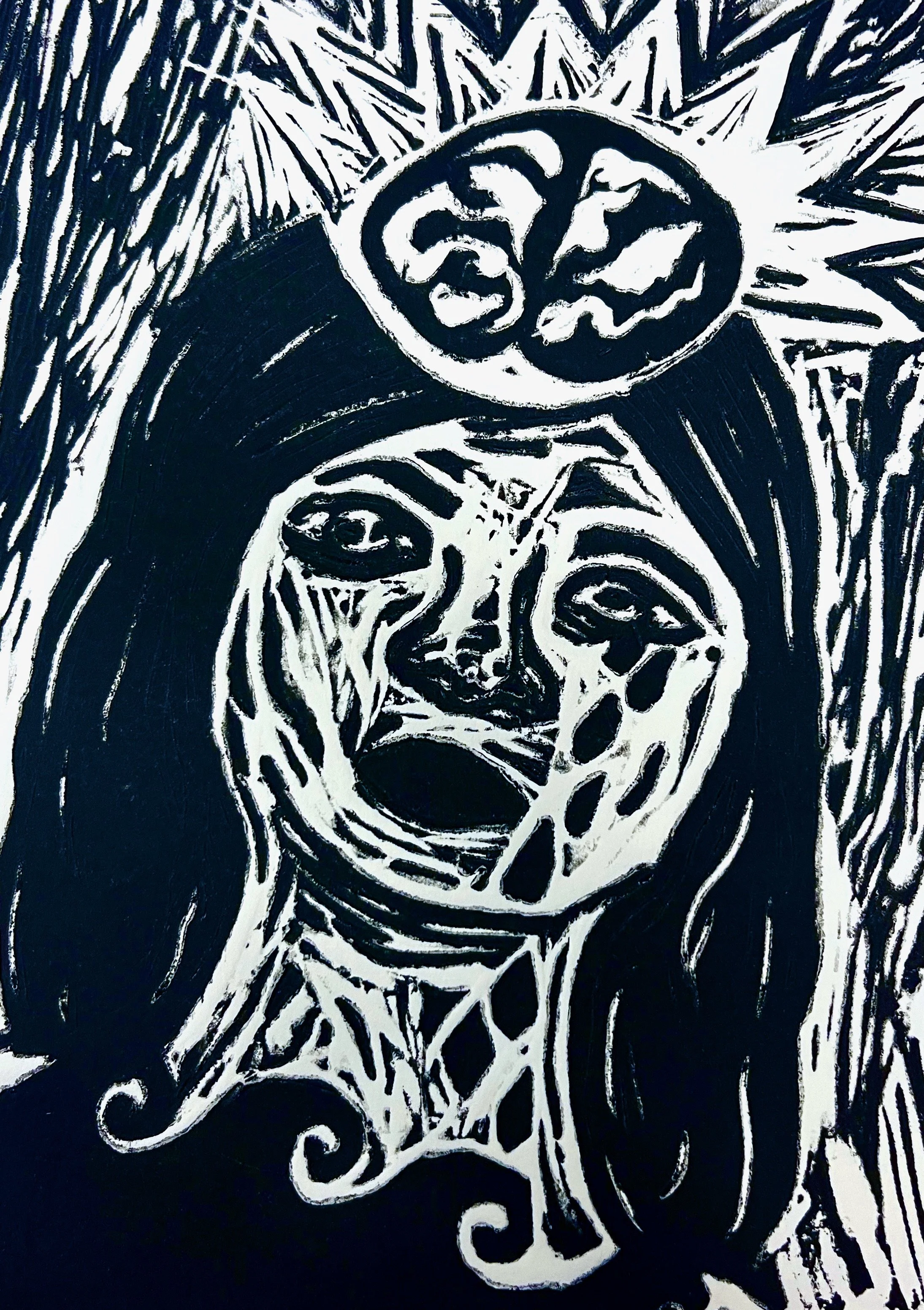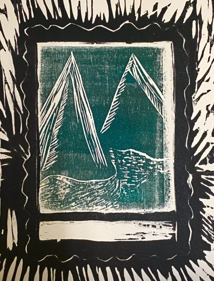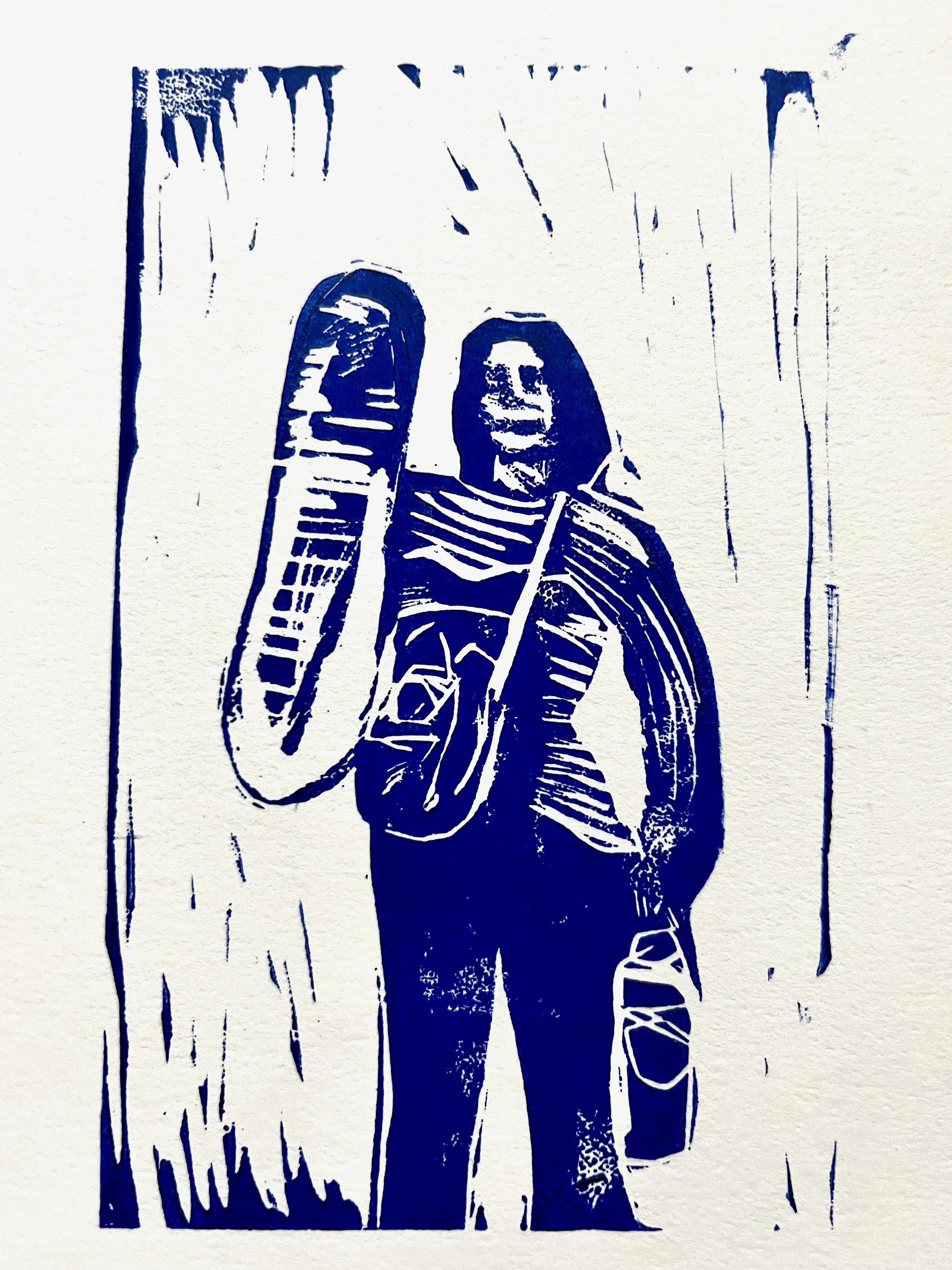 My available pieces are listed below and include a range of original paintings and prints (linocut, intaglio, woodblock, cyanotype, and silkscreen). Please contact me with any questions or if you’re interested in a custom commission. For framed work, the listed dimensions include the measurements of the frame.